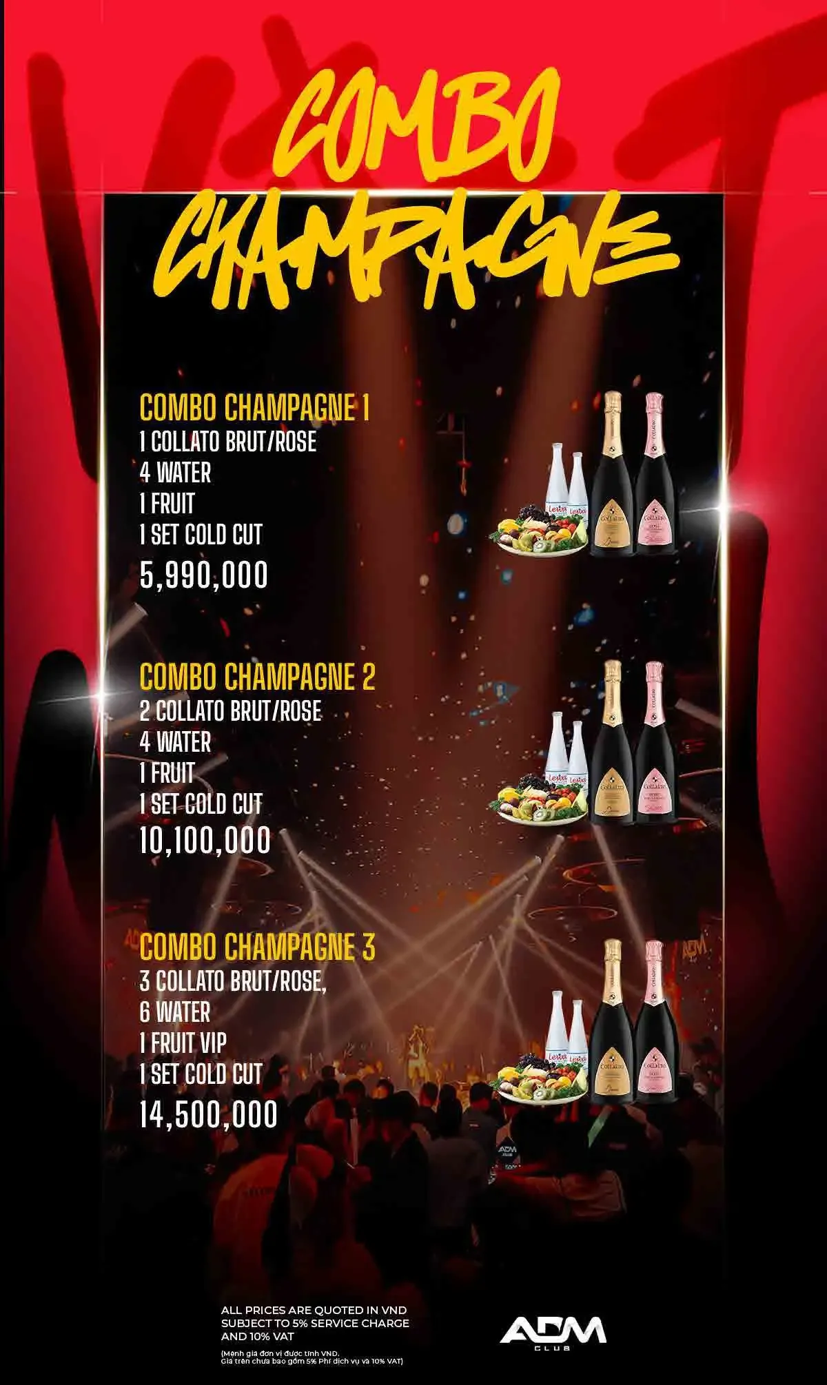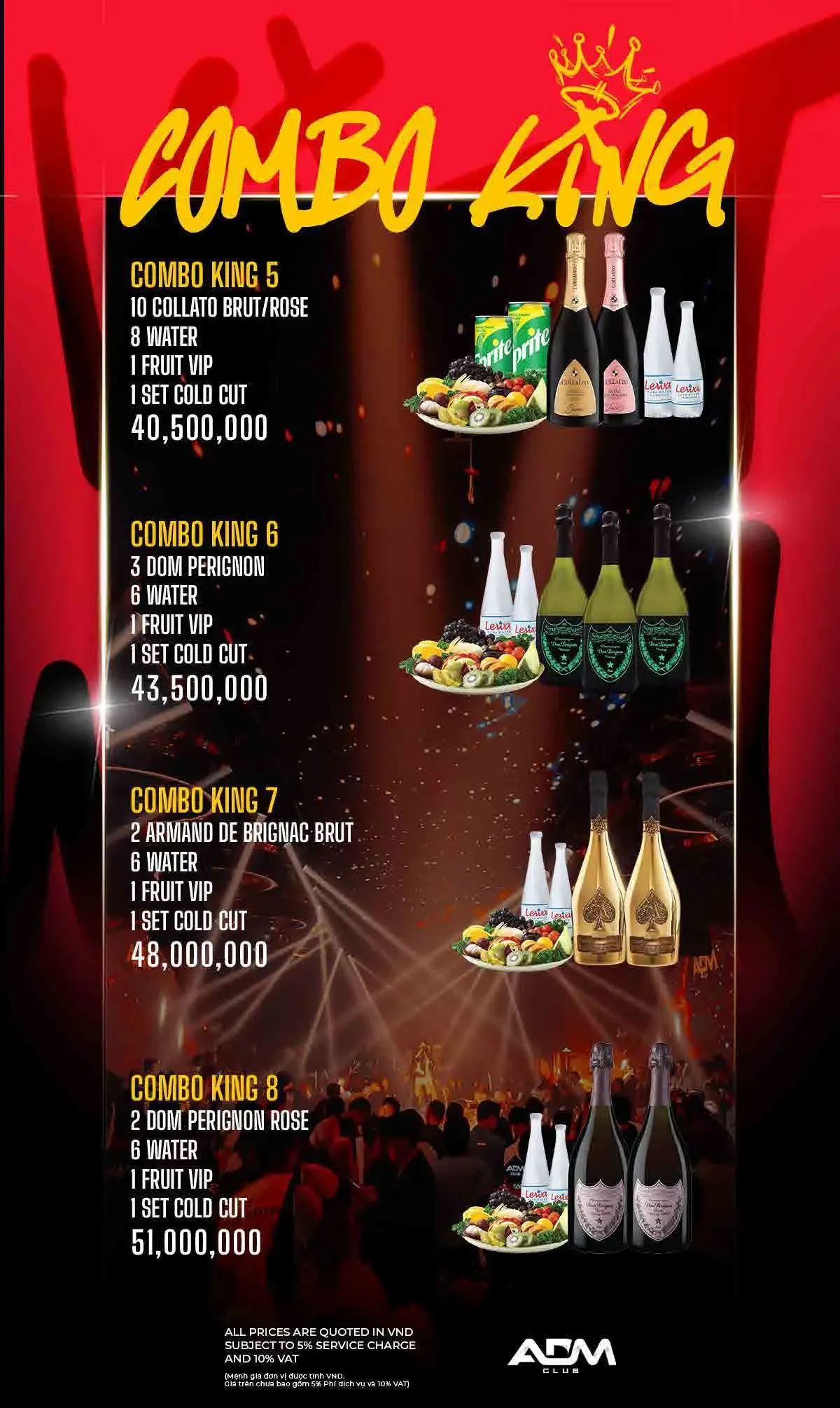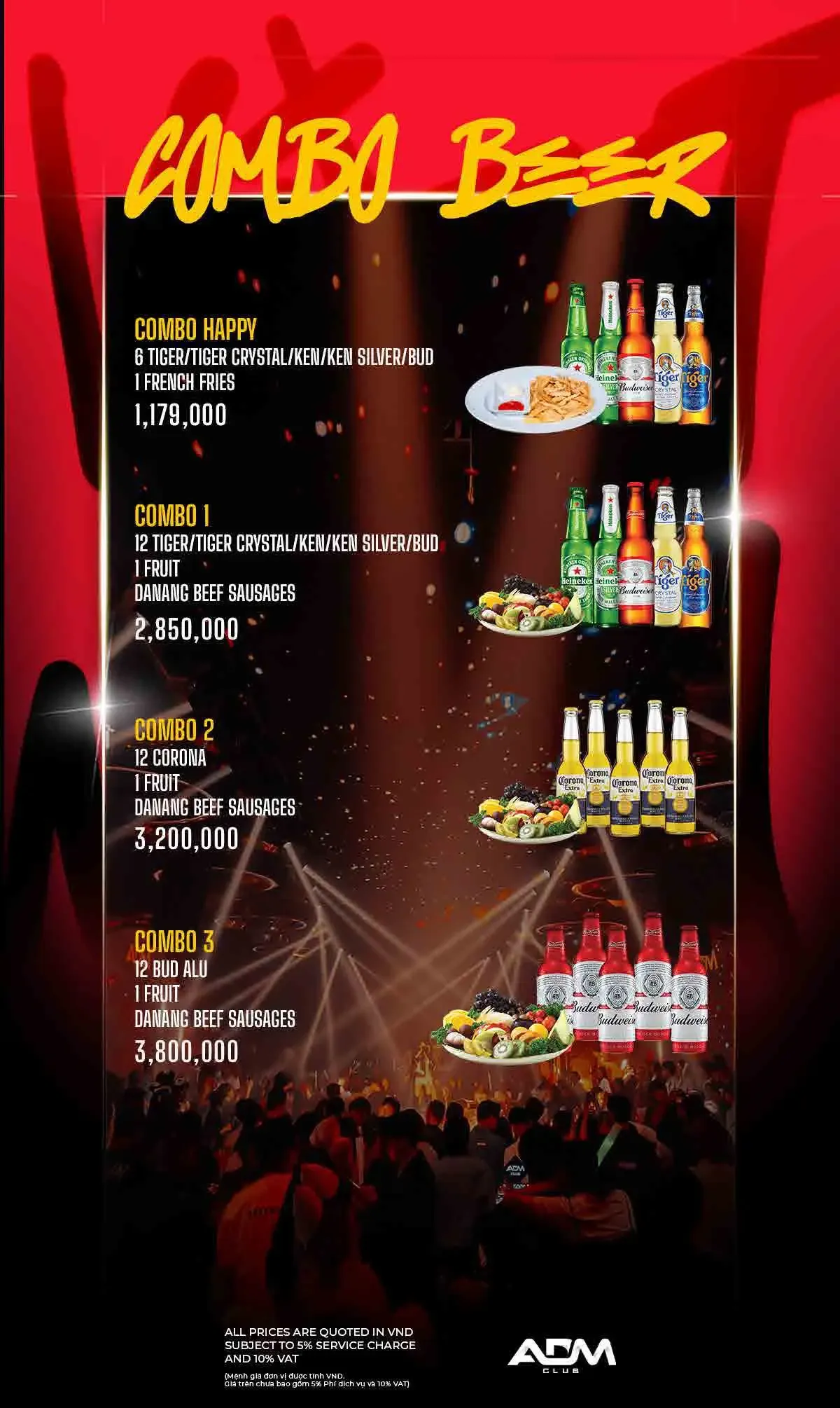 ADM 클럽 이름답게 EDM 클럽 음악이 주를 이루며, 화려한 댄서들과 조명 및 사람들이 가득합니다.