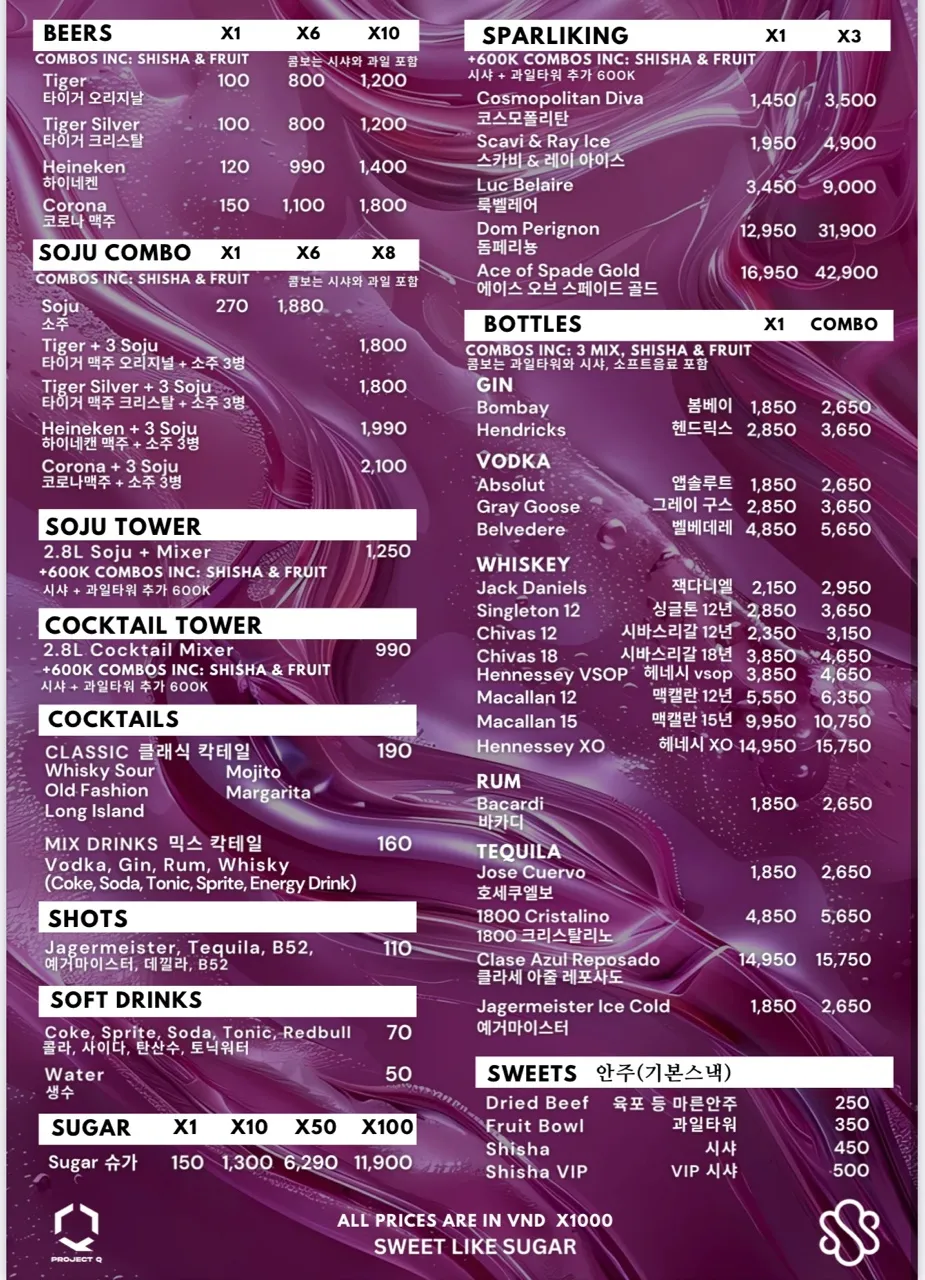 다낭에서 이렇게 세련된 클럽은 많지 않습니다. 테이블 예약을 하면 스테이지 근처 명당을 잡아주고, 위스키, 샴페인, 칵테일 등 술 종류도 다양합니다. 분위기 좋고 음악이 좋으니, 술이 절로 들어가죠.