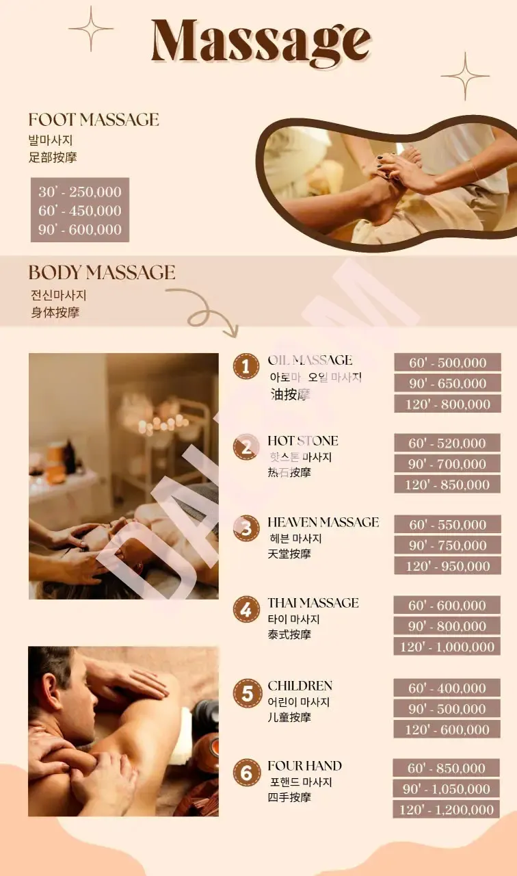 - 운영 시간 매일 09:00 ~ 22:00 (마지막 마사지 예약 21:00)