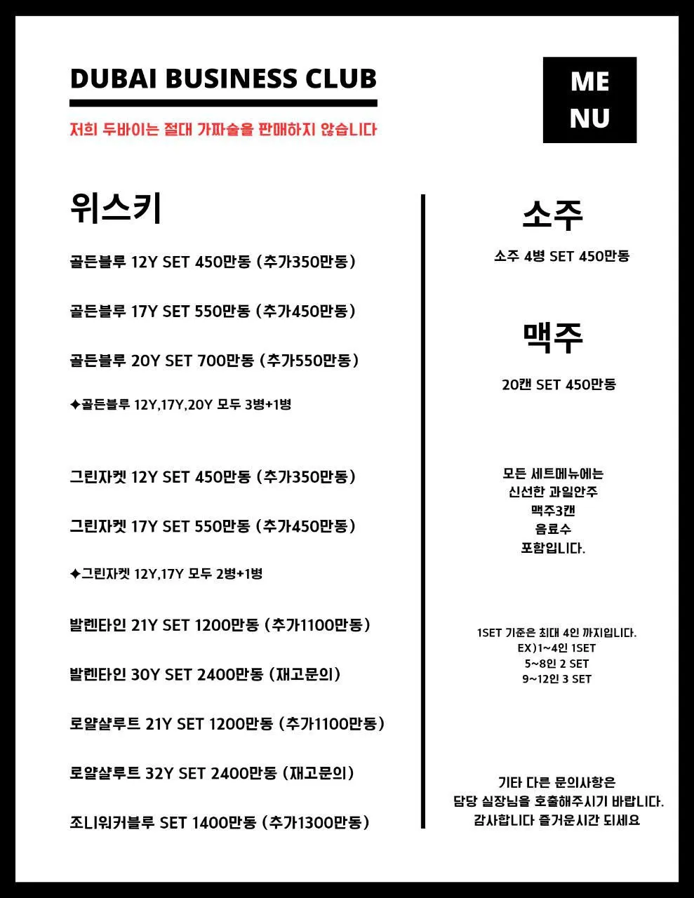 여기에 마담 팁 50만동 / 웨이터 팁 30만동이 별도로 적용됩니다.