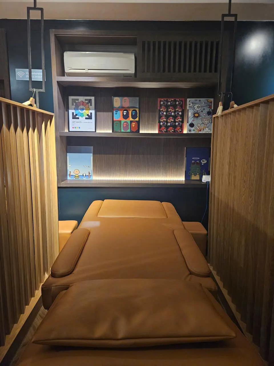 VIP Barbershop의 첫인상은 “정돈된 어둠의 여유”입니다. 불필요하게 밝지 않은 조명, 차분한 음악, 그리고 은은한 향기가 퍼지는 마사지룸. 대기실에서는 물이나 커피 등 음료 서비스를 받을 수 있고, 차례가 되면 담당 직원이 직접 안내해 마사지룸으로 이동합니다. 깔끔하고 세련된 인테리어 덕분에 도심 속에서도 오롯이 나에게 집중할 수 있는 아늑한 분위기가 매력입니다.